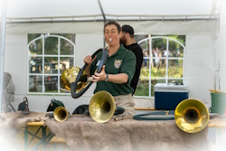 Interessierte konnten vor Ort am Stand auch das Fürst Pless Horn sowie das Parforcehorn ausprobieren. Die Freude war bei einigen Besuchern anzumerken, als sie den einen oder anderen Ton herausbekommen haben.